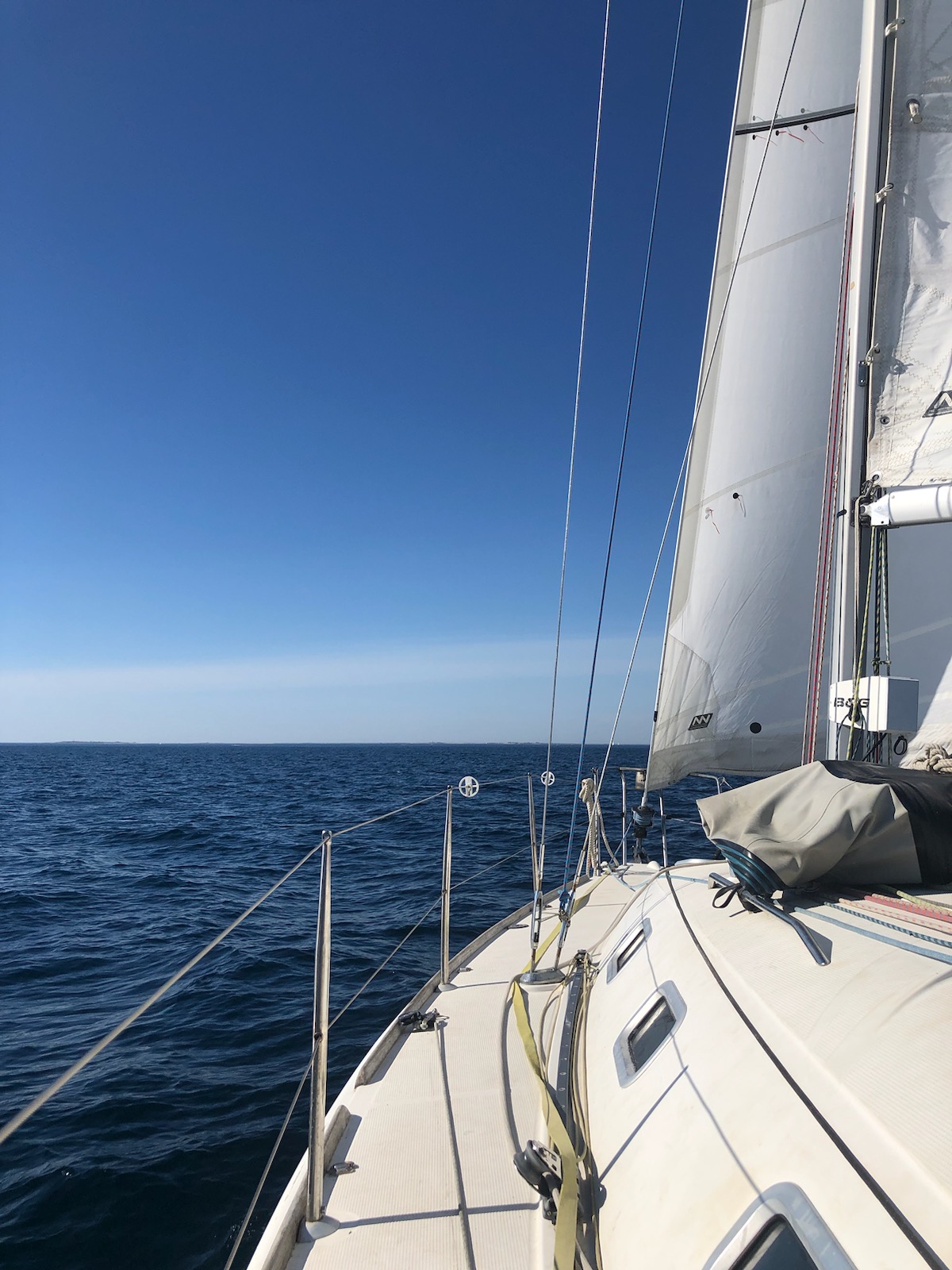 4 demi journées en mode stage pour 2 quinquagénaires afin de devenir de bons moussaillons. Du soleil, un peu de pluie, pas de vents, puis 25 noeuds, un peu de tout pour savoir border, choquer, brasser, … garde montante, descendante… et faire un peu de noeuds avec tout ce nouveau vocabulaire. Bref, Julie a été parfaite : présence et patience. Quant au bateau, très dynamique !
